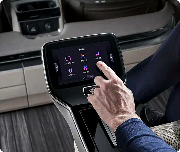 시트 뿐만 아니라 후석 조명 및 공조, 21.5인치 스마트 모니터, 2열 좌측 전면부 아래에 위치한 발 마사지기 등등을 통합 컨트롤러에서 모두 간편하게 제어할 수 있습니다. 기아자동차 최초로 설치된 발 마사지기는 헬스케어 전문 기업인 휴테크과 협업하여 개발했다고 합니다. 한번 써보고 싶네요~ ^^