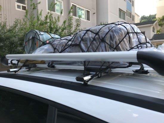 루프 캐리어의 초기 형태로 사용하기가 매우 간편한 것이 특징입니다. 그럼에도 불구하고 루프 박스나 루프 랙보다 최대 적재 중량이 높은데요. 자전거나 보드등 차 안에 실을 수 없는 부피가 큰 것들을 실을 수 있습니다. 하지만, 그만큼 풍절음이 발생하며 고정하기가 쉬운 편이 아니라 숙달이 요구되지요. 또한 방수에 취약하기에 우천 시에는 별도의 커버로 적재물품을 보호해야 하는 것이 번거롭죠.